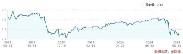 北京时间 8 月 28 日本,人民币对美元中间价报告 7.1216,调升 33 个基点。