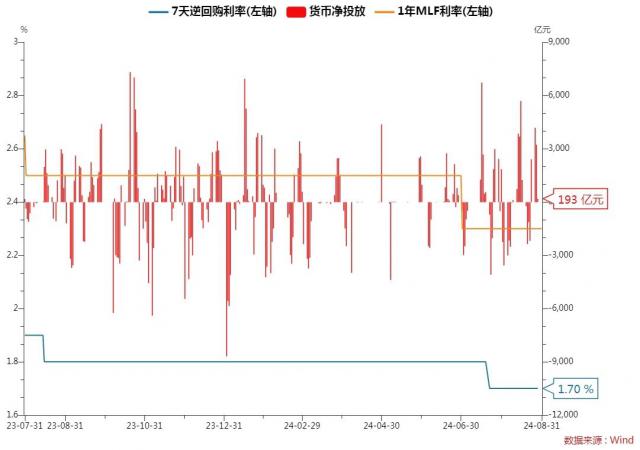 央行 8 月 28 日以固定利率、数量招标方式进行 2773 亿元 7 天期逆回购操作,操作利率 1.70%。Wind 数据显示,当天 2580 逆回购到期1亿元。