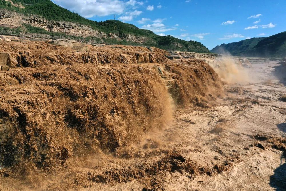 受持续暴雨影响,黄河壶口瀑布近日迎来洪峰过境,水岸相平的罕见景象。详情(来源:新华社客户端)