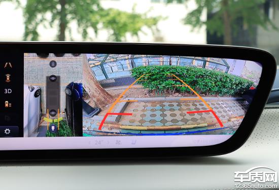2024 款别克 GL8 陆尊 PHEV 配置 360 全景图像支持多角度查看。实际测量显示,在白天阳光充足的情况下,不仅画质清晰度优异,而且没有明显的畸变。此外,图像中还配有随机的倒车辅助线,可以为驾驶员提供参考,实用性强。