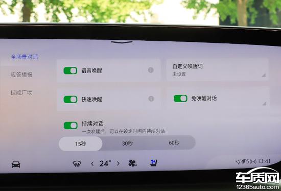 就语音交互而言,2024 款别克 GL8 陆尊 PHEV 基本上可以满足日常使用的需要,支持语音分区唤起识别,避免唤起对话和语音持续识别。根据实际测量,该语音系统能够更快、更准确地执行指令。在设定方面,客户不仅可以定制唤醒词,还可以设置持续对话的时间。系统发音人员提供多种选择,包括情感女声和甜美女声等。另外,用户还可以登录百度帐号,录制专属语音包。