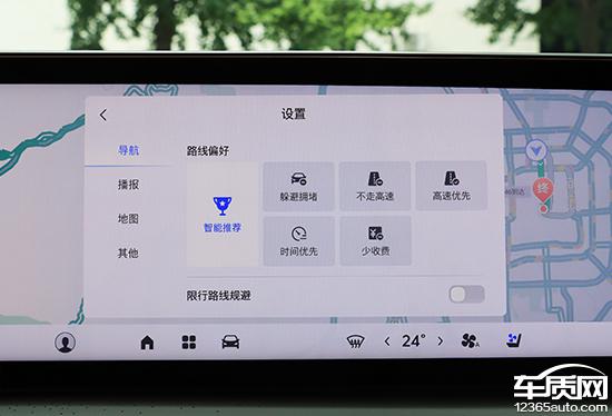 在设置页面中,可以详细调整和选择导航系统的路线偏好、广播和地图显示,内容丰富。从实际测量来看,这个导航系统的交互逻辑清晰合理,入门难度不高,整体表现引人注目。
