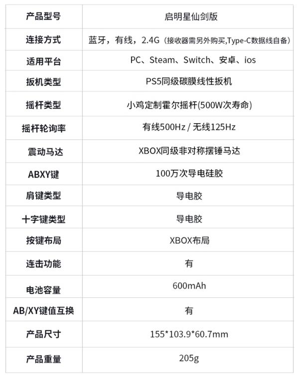 仙剑奇侠传 x 盖世小鸡联名限定摇杆具有 500Hz 高回报率,能有效降低操作中的抖动和功耗,同时保证高灵敏度。