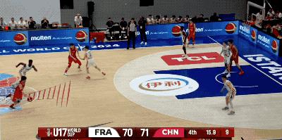 张博源打法国队有读秒单挑出手的三不沾,也有突破时跌跌撞撞的窘境。