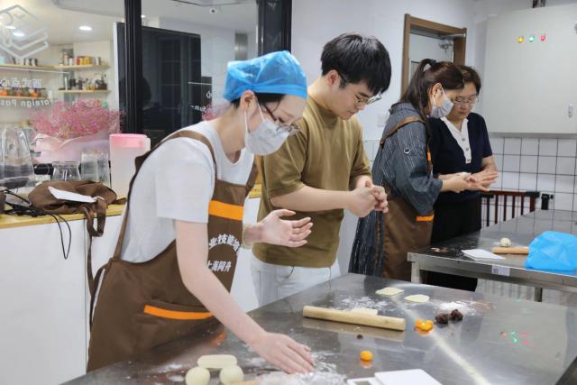 “白天上班节奏快,压力大,晚上想做自己喜欢的事。当我们做挤豆沙的时候,一个人负责挤,另一个人说大家合作很愉快,效率很高。我也很期待把自己做的蛋黄蛋糕带回家给家人品尝。”学生孙雨婧说。