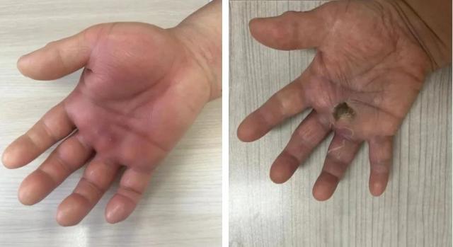 没想到,第二天早上 1 点,杨阿婆突然发抖,高烧,呕吐,右手肿成“大馒头”。一家人紧急送她到华东医院急诊求助,急诊医生在完善相关检查后给予对症治疗。