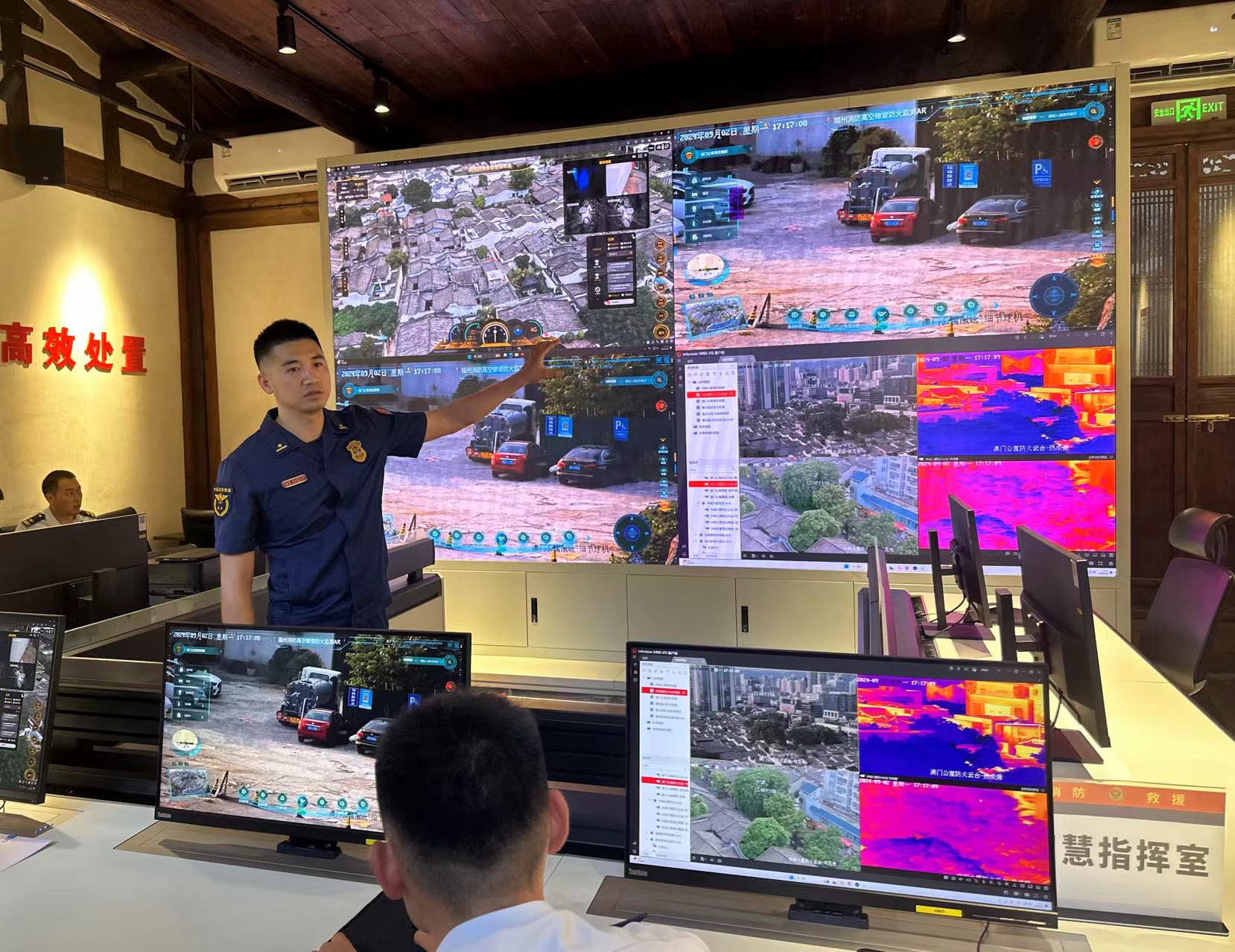 借助智能消防系统,救援站远程监控辖区情况。本报记者 王选辉 图