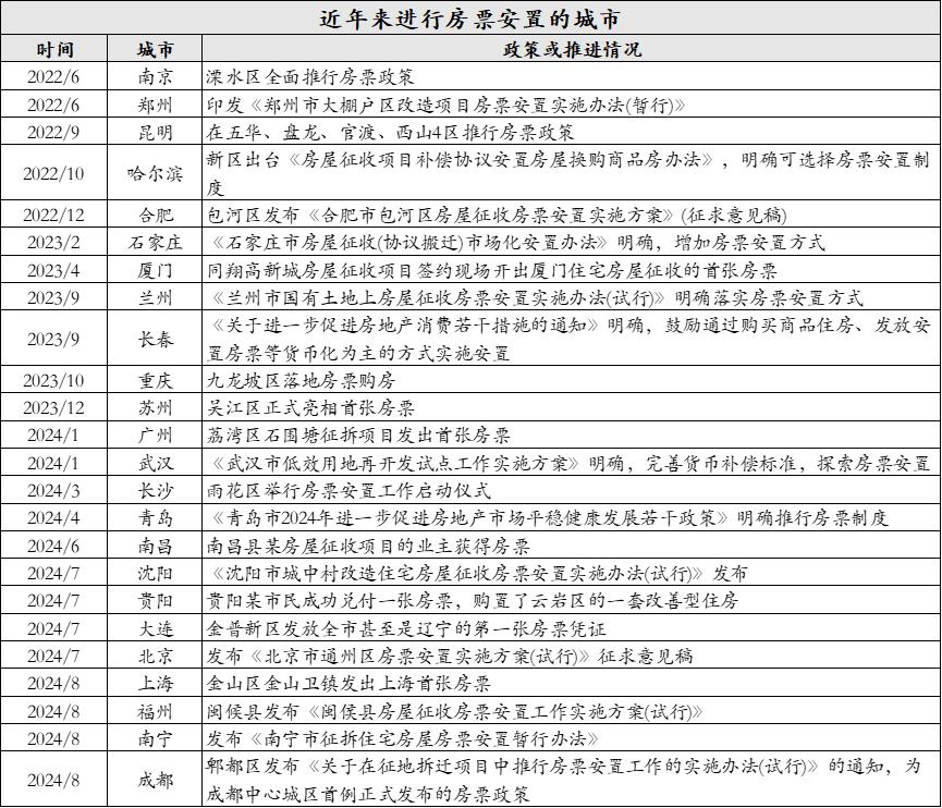 对于上海而言,房票安置并非首创,目前全国已有数十个城市前后出台了房票安置政策。