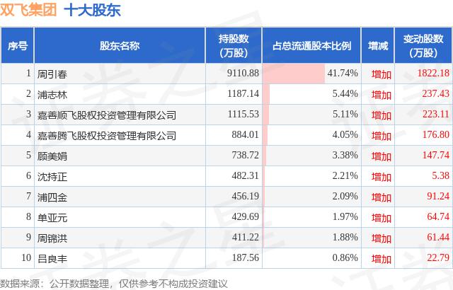 依据双飞集团 2024 年中报告公布的十大股东详细信息如下: