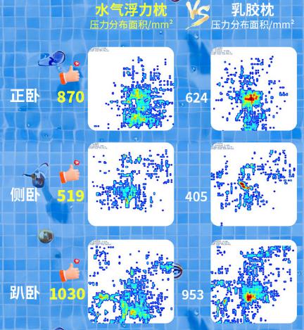 我们还贴心与市场上常见的几款枕芯相比,,水枕的分散压力面积更好!