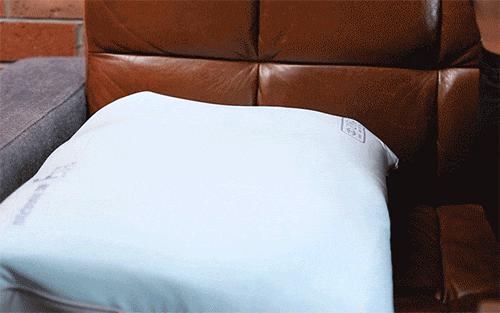 运用水物理原理,即使把一整个西瓜从天而降,枕芯也不会像普通枕头那样被压出塌陷,而是立刻撑起。