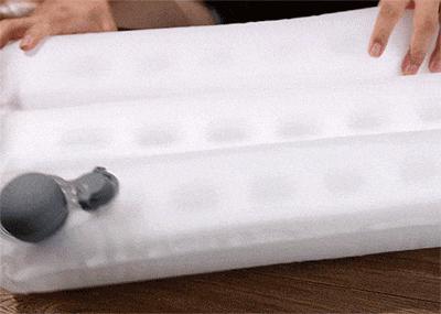 内置镂空海绵层,我特别满意这一点,可以给我的头提供柔软的触感,还可以一直支撑TPU枕面,留出空隙让空气快速通过,充气时快速充气,手不累。