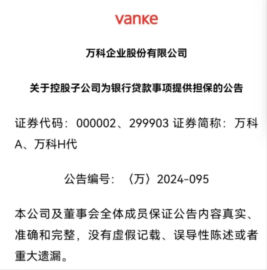 九月四日晚,万科发布公告,披露其控股子公司为银行贷款事项提供担保的相关信息。