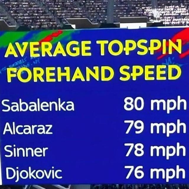 萨巴伦卡在这场比赛中创造了一个令她相当尴尬的记录——正手上的旋球速度比所有男球员都快,这显然表明她的抽击力有多强大。