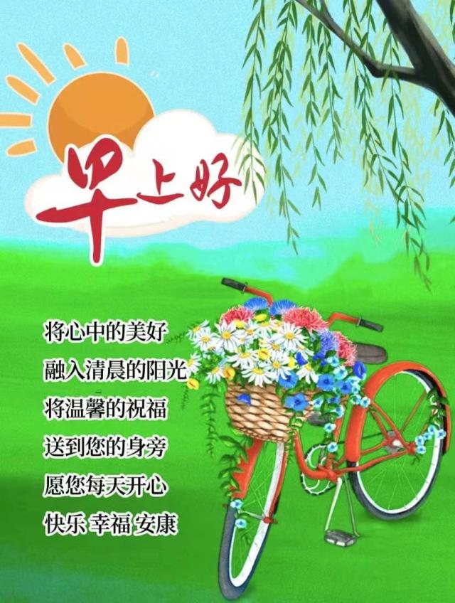 早上好,祝朋友们:每天早上都快乐,每天都快乐有趣;每个月,紫色来自东方,每年春风都很自豪;一路花开,一生健康相依!早上好,吉祥!