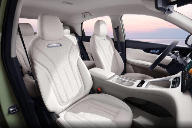 内饰提供两种配色方案:天镜白色和仙踪绿色,给人一种时尚清爽的感觉。环抱式驾驶舱设计也相对简单,融合了大量椭圆形设计元素,灵感来源于河卵石,温柔自然。