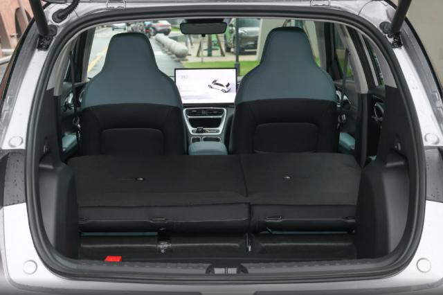 虽然车身长度不大, 但得益于纯电动平台的优势,四轮尽可能靠近四角,提高了车内的乘坐空间。除了良好的乘坐空间,车内还提供了许多方便的储物空间,如 10L 抽屉式手套箱。