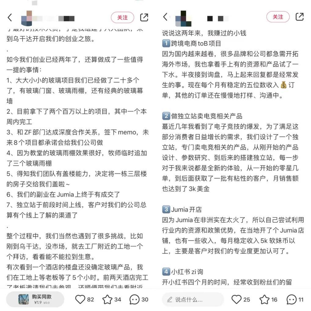 然而,施首席并非金融界第一个去非洲创业的工人。八妹发现,在小红书里,也有类似的案例。