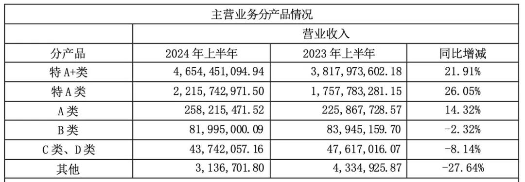 就营收结构而言,中高端产品是当今世界营业收入的主要增长点。半年报显示,这个世界的主要收入来自特别A 类别产品,收入占一半以上。与以往相比,出厂价格超过300元的特A 同比增长21.91%的商品(主要是国缘V系)实现了46.54亿元的营收。;特A类(主要是国缘单开、今世缘系列)商品参考价100-300元,实现收入22.16亿元,同比增长26.05%,收入占30.34%,两类商品收入占94%。可以看出,今世缘90%以上的营业收入都是由今世缘和国缘两大品牌创造的。