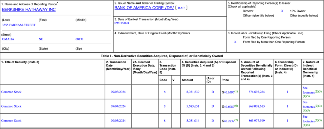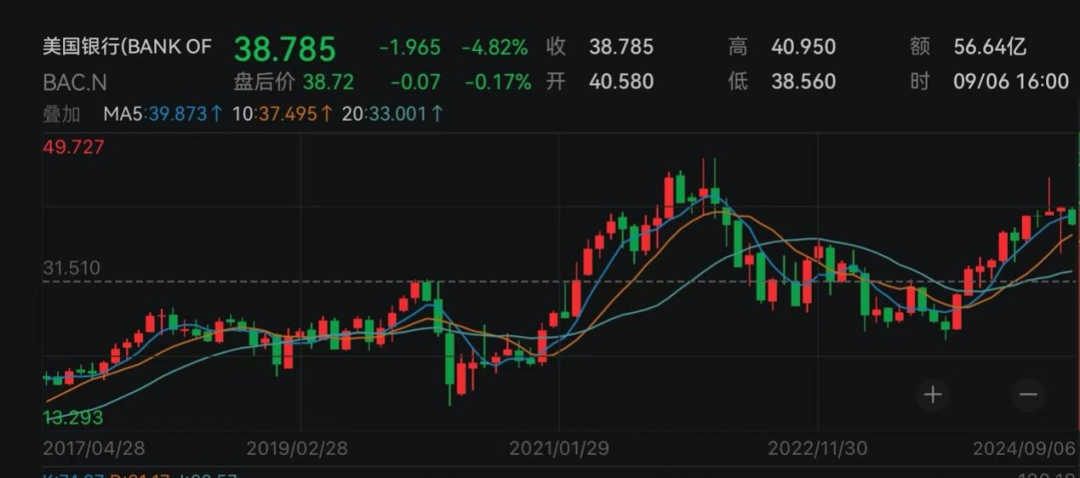九月份,巴菲特卖出美国银行股票的步伐并没有停止,伯克希尔哈撒韦在2024年9月3日、4日、5日连续三个交易日减持美国银行股票,共计1874.6万股,套现约7.6亿美元。