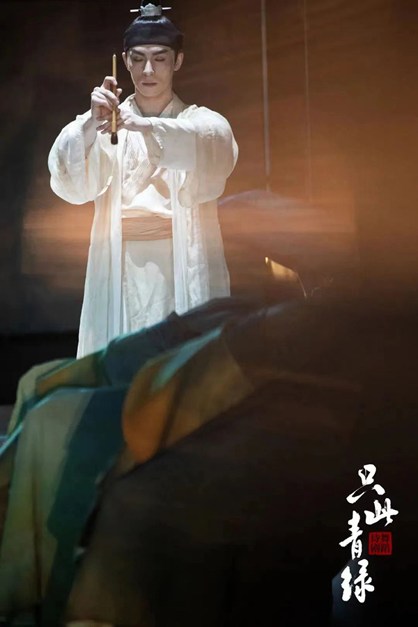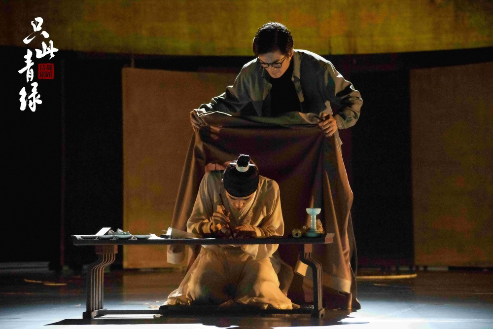 《只有这样的绿色》分为七章:展卷、问篆、唱丝、寻石、练笔、淬墨、绘画。通过展卷人的视角,它带领观众穿梭时空,进入画家希孟的绘画世界。这种独特的叙事结构不仅丰富了戏剧的表现水平,也为观众提供了一种身临其境的“赏画”感。
