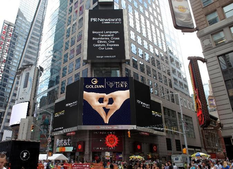 纽约时代广场上的真爱手心亮相