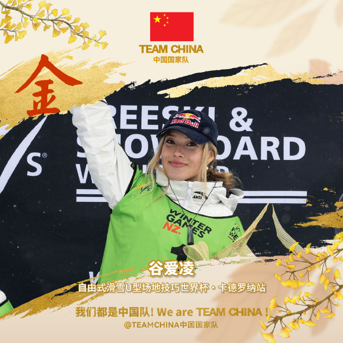 “今天在新西兰举办的本赛季第一届世界杯意义重大,荣获第十五届世界杯金牌,为国际雪联自由滑雪世界杯男女创造了新的历史记录。我也祝贺我的队友张可欣。赛后,谷爱凌在社交账号上谈到了获得这一荣誉的经历,“我将继续努力,不要忘记你的主动心态,打破界限。感谢朋友们顶着风雪,不怕时差的支持。每个人的爱和鼓励也激励着我!咱们一起加油吧。”