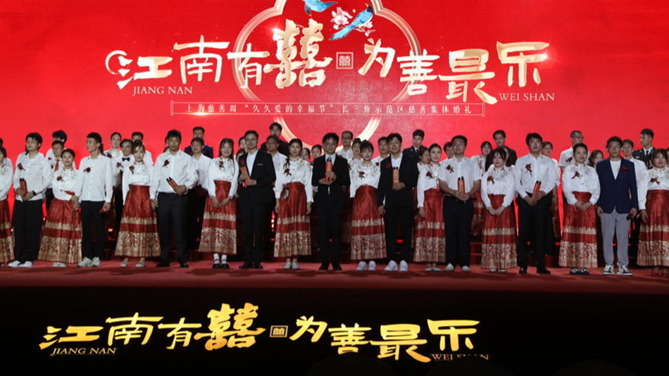 江南有,为善最乐。9月8日,上海慈善周“长久爱的幸福节”长三角示范区慈善集体婚礼在青浦区水城门双拥广场举行。