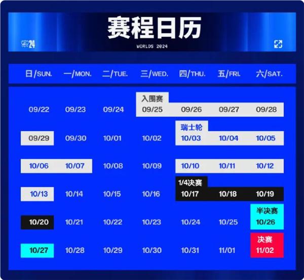 《英雄联盟》S14全球总决赛赛程发布:9月25日开始。