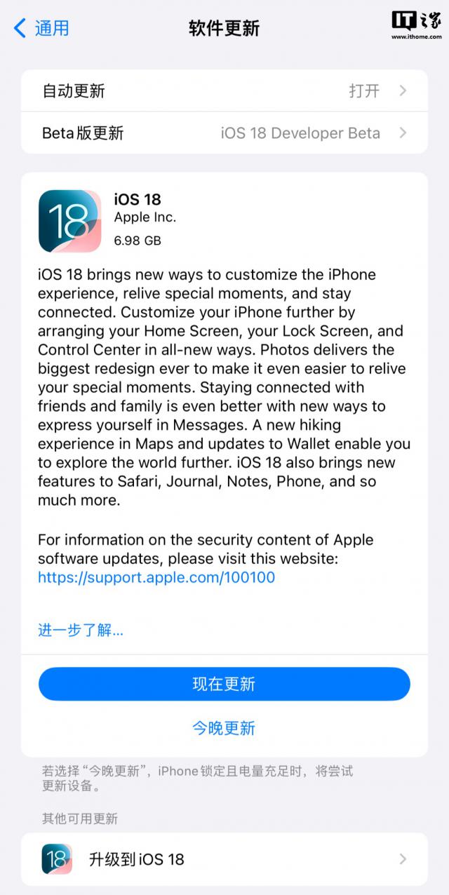 苹果 iOS / iPadOS 18 RC 更新版本推送