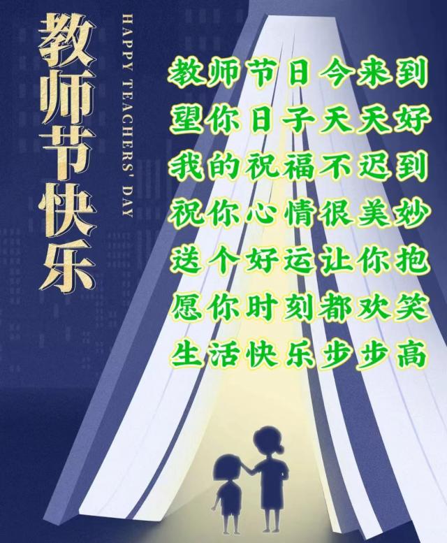 老师如海,桃李满天下。老师,你辛苦了。因为你的谆谆教诲,我走了几千英里,走了一段楼梯。谢谢你,亲爱的老师,祝你教师节快乐!健康快乐。祝你万事如意,幸福长久。家庭幸福,桃李满天。