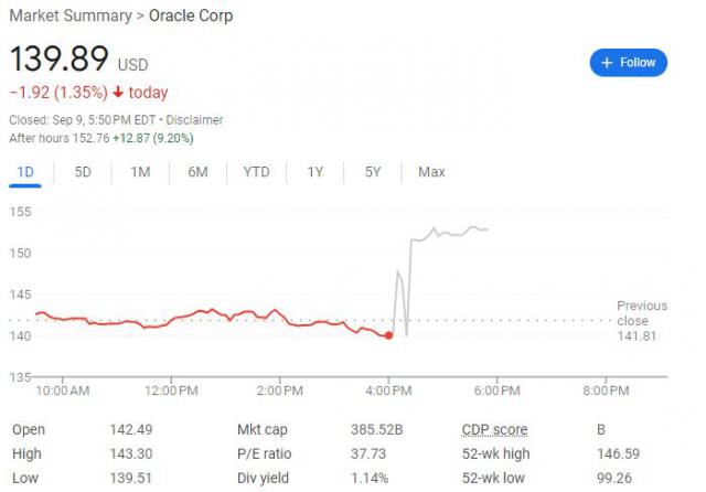 财务报告公布后,周一收跌 1.4% 甲骨文盘后大幅上涨 9%。这只股票今年累涨约。 跑赢标普市场32%。