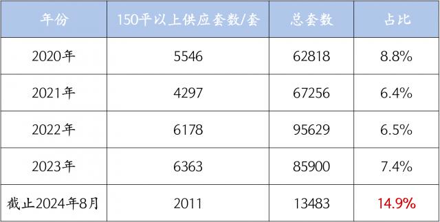 2022 年、2023 每年连续两年供应 150 平均以上大户型,均超过 6000 套