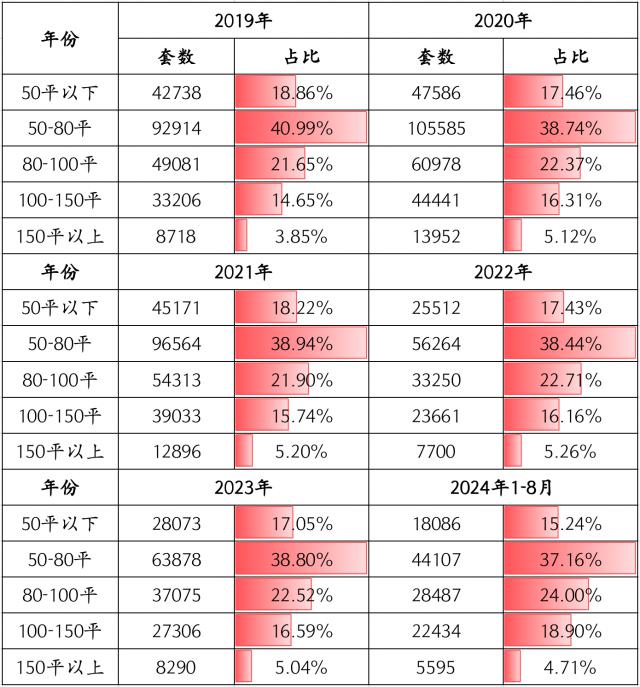 不只是整个市场 70% 上述所有交易都是 100 平下小户型