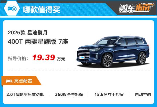 伴随着消费的升级,现在很多重视实用性能的消费者已经开始将注意力转向中型甚至中型。 SUV 市场上,虽然定位上来了,但对一些自主品牌车型来说,价格还是很亲民的。不久前,2025 星途揽月正式上市,新车定位中大型。 SUV,不但具有良好的产品实力,而且在价格方面也表现出极大的诚意。所以,对于这样一款以性价比为产品卖点的中大型产品, SUV 怎样选择车型?本期《购车指南》将为您详细分析。