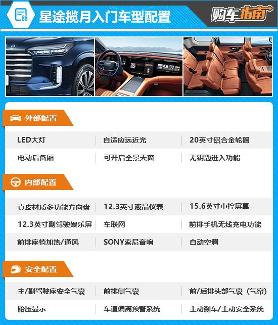2025 星途揽月入门车型为两驱星耀版,售价 19.39 万元。虽然也谈不上“入门即高配”,但客观来说,它的装备表现还是有目共睹的,满足日常使用基本不成问题。事实上,无论是基本配置还是电动后备箱、前排座椅通风, / 加热,甚至主动刹车 / 高级配置,如主动安全系统,都是整个系统的标准。真诚的价格加上丰富的配置性能,入门级车型十分值得推荐。