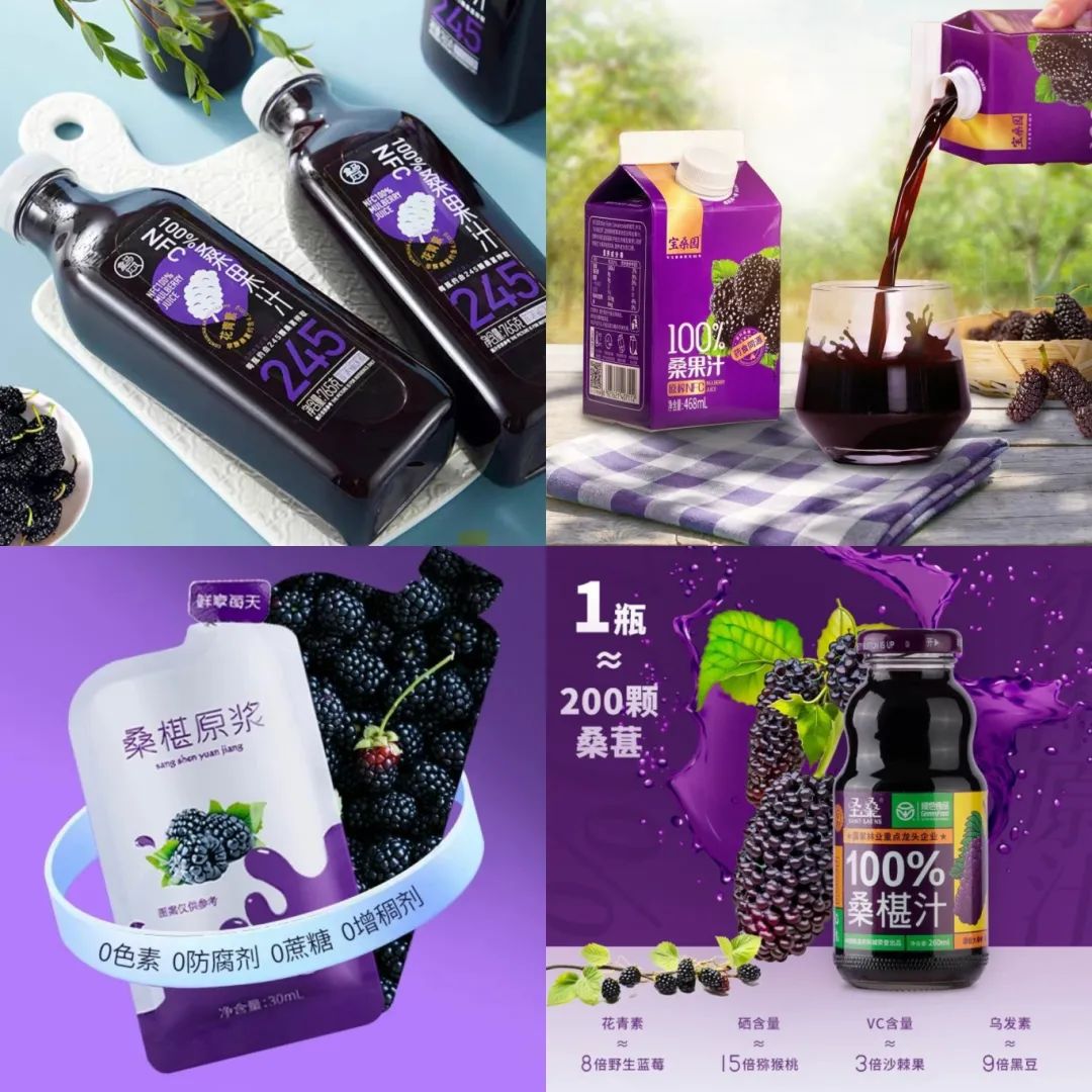 比如甜拉拉之前推出的“黑武士桑葚”系列,在安徽才三天,总销量已经超过60万杯。此外,奈雪茶、西茶、茶百道等新茶品牌的不断进入,使得桑葚的口感迅速破圈,成为2023年最受关注的口味之一,不仅促进了中和宝桑桑果汁产品的增长,还通过山姆、盒马等方式推出了自营产品。