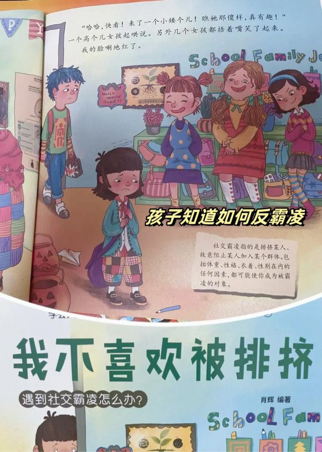 就像我女儿上幼儿园的时候,经常和她一起读书。儿童反霸凌启蒙绘本,所以她可以分辨出什么是欺凌,一旦别人欺负她,她就知道告诉老师和我,所以别人都不敢惹她。