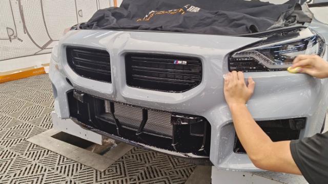 这辆宝马 m2 是车主一提到新车就送来的。第一次帮车主检车后,我们发现车身周围没有明显的疤痕,但是头上有肉眼可见的污垢和水痕。