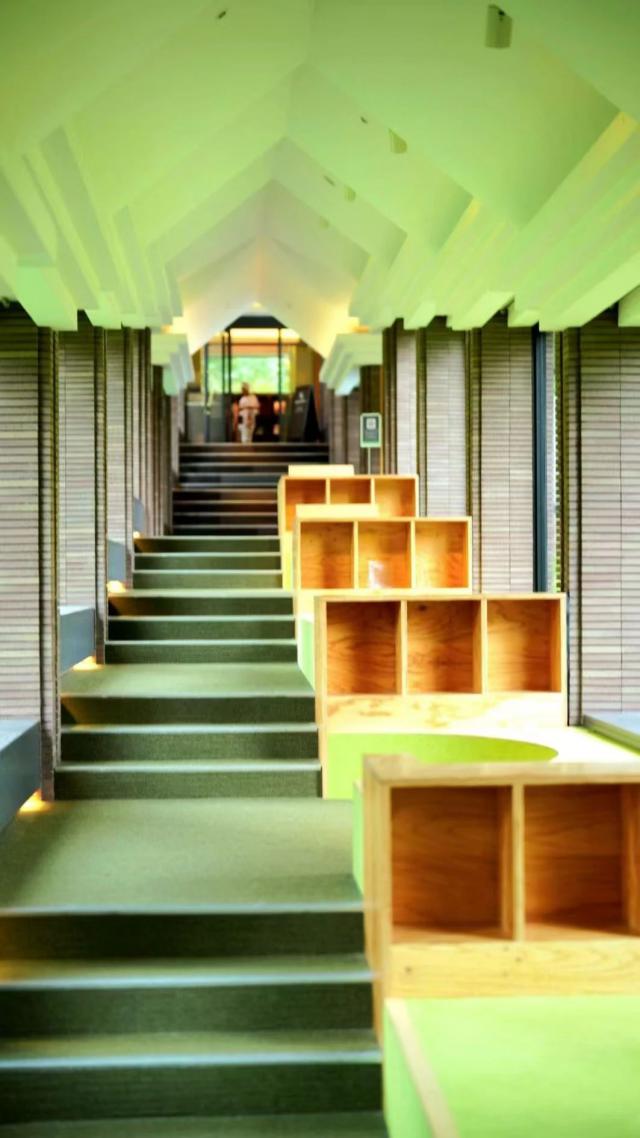 下沉式台阶分为成人和儿童阅读和玩耍区。 / 旅界实拍