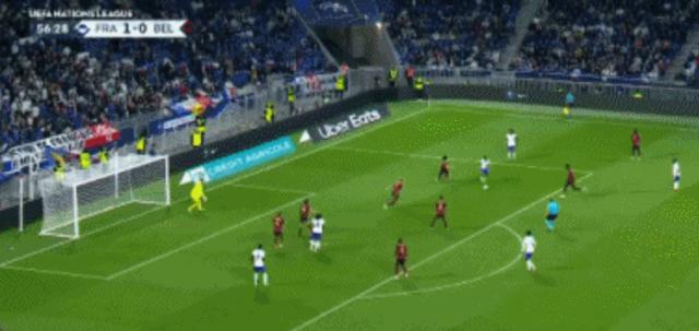 仅仅过了 3 法国几乎在几分钟内被扳平。第一 32 几分钟,比利时前场逼抢,于帕梅卡诺匆忙地回传了差一点的礼物,门将迈尼昂大脚踢出了界外。