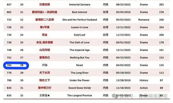 然而,纵观世界电视剧的排名,即使是在华语区排名第一的《尝试世界》,在世界上也只排名316位。与美剧、韩剧等其他剧种在Netflix的大规模分布相比,温度还是欠的。