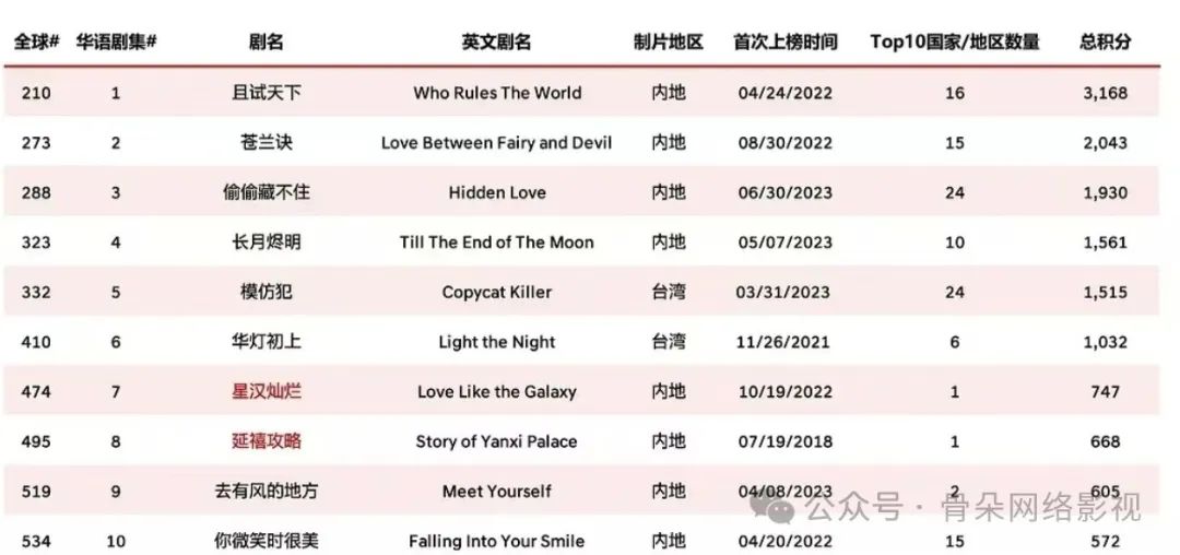 2022-2023Netflix华语剧排名
