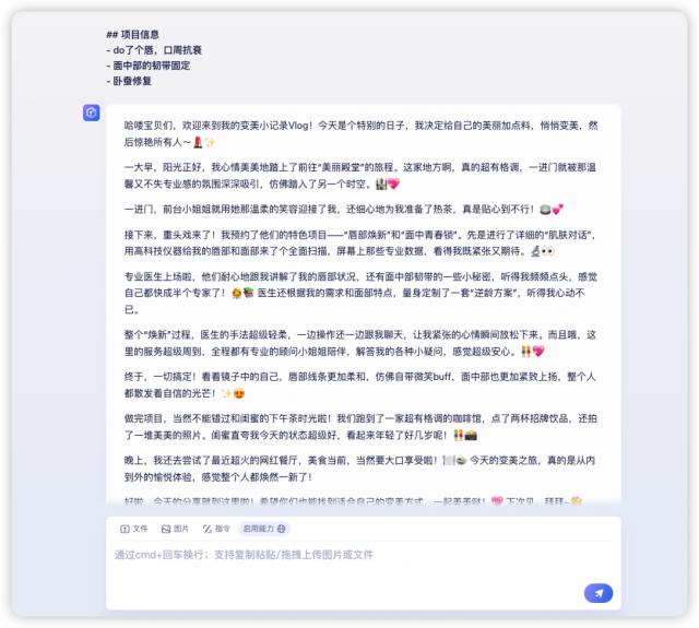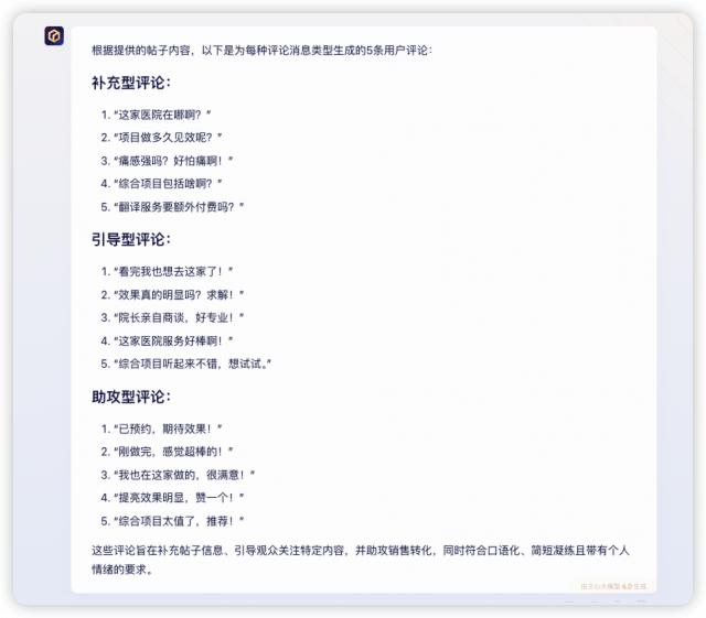 以上边那条 do 脸探店 vlog 录像为例,下面是文小言为我们写的一些气氛组评论:
