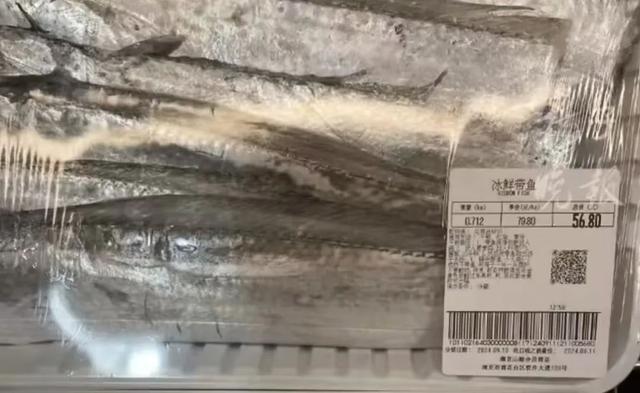9 月 12 日上午,媒体记者来到南京雨花台区山姆会员店,在海鲜柜里看到了这条带鱼。最近的打捞日期是 9 月 8 日期,保质期为 5 天空,已经没有了 9 月 6 每天都有打捞。