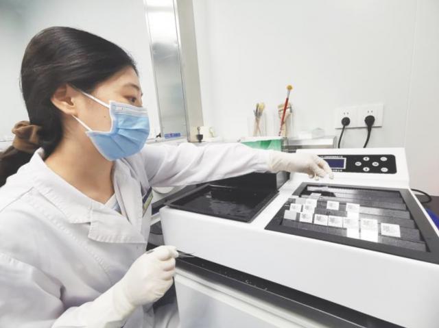材料,固定,脱水,切片,染片,封片… 9 月 6 日本,荆州市第一人民医院数字智能病理诊断中心,医护人员正在紧张地制作病理切片。每个切片和流程都标有电子代码,以确保可追溯性。扫描后,生产出来的切片上传到病理信息系统,数据在全省共享。