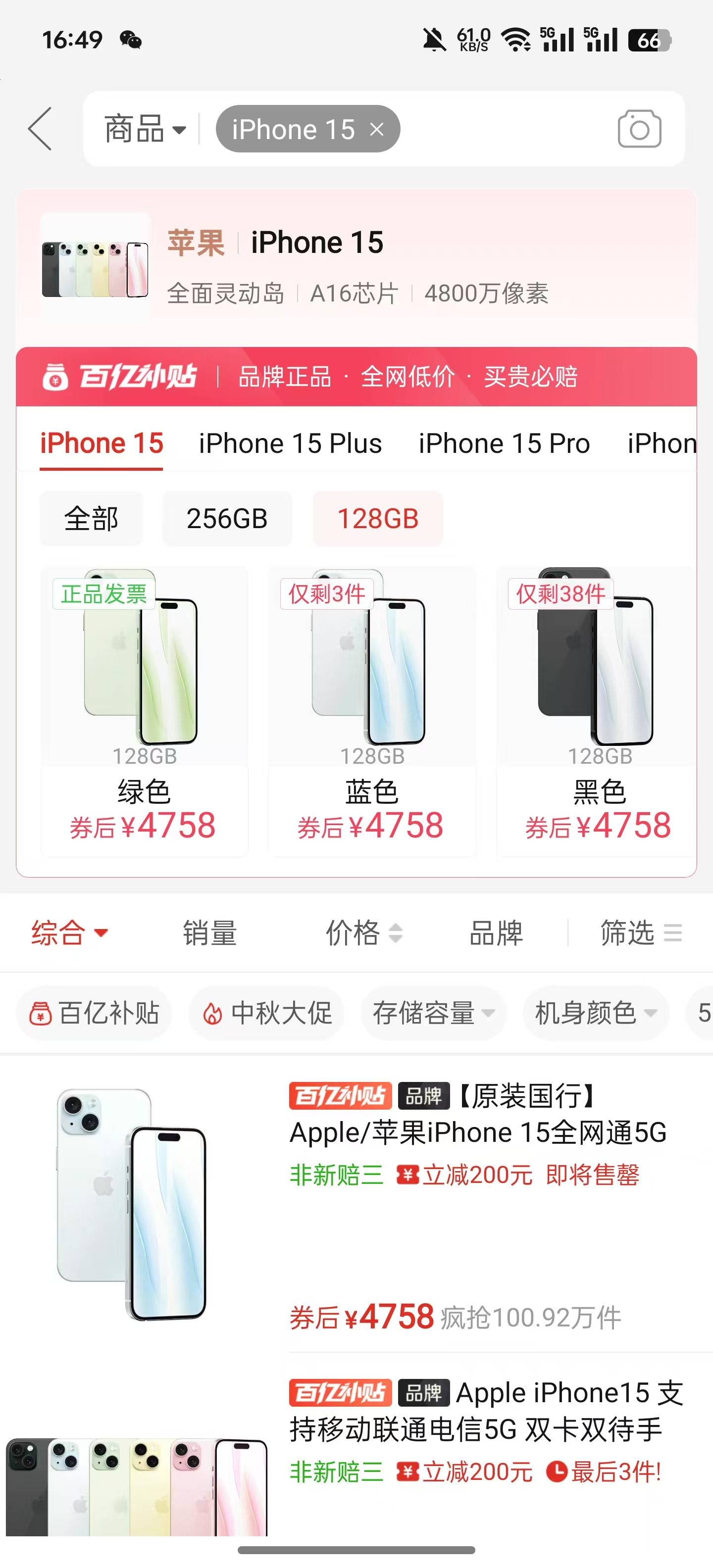 在安卓手机市场上,5999元的价格足以买到顶级旗舰,但只是iPhone。 16系列起步价。另一方面,iPhone 15系列不断降价,现在某电商平台在百亿补贴活动下,iPhone 15起售价已经降到了4758元,一些第三方商店iPhone 15起的价格甚至不到4500元。在这个比价阶段,我们根据这个平台的百亿补贴价格来计算。