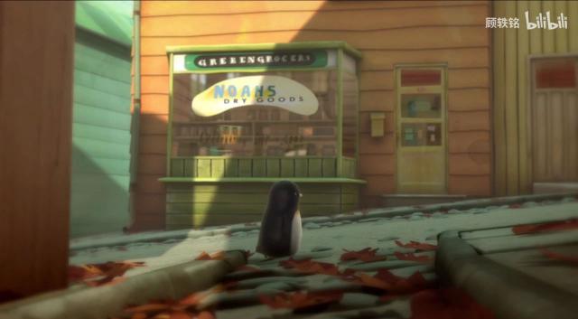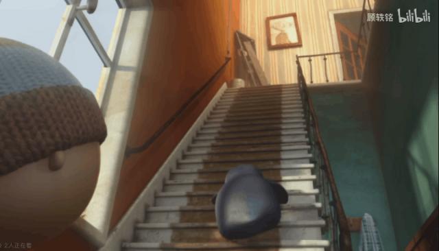 小男孩开门后,企鹅不闻不问,屁股颠倒地爬到他家二楼,东看西摸,就像来到自己家一样。