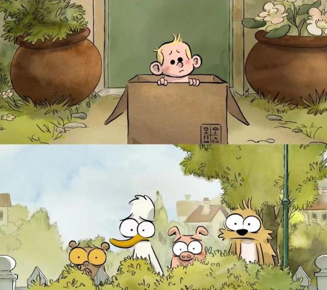 第一个故事《送子记》,猪、兔、鸭在护送人类宝宝回家的路上,经历了惊心动魄的道路探险。