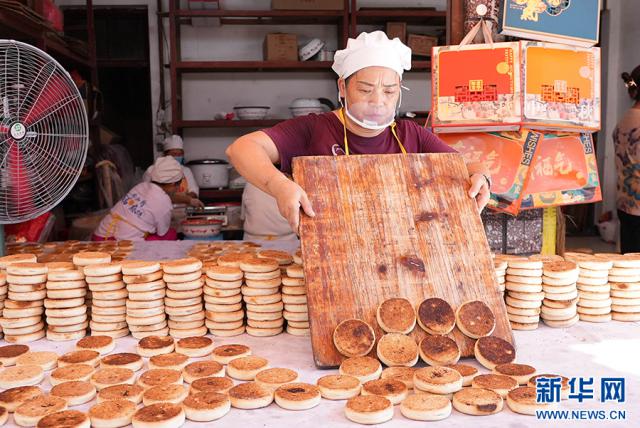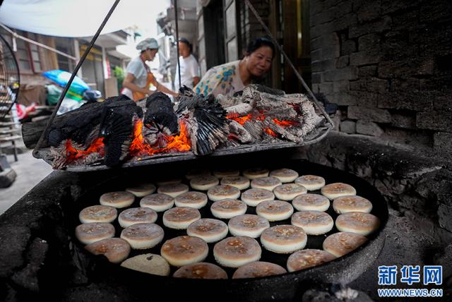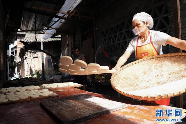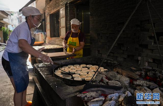 贵州省榕江县寨蒿镇是一座历史悠久的商业古城,其“寨蒿古方炭烤麻饼”已存在 200 经过多年的历史,炒面、做馅、包心、沾麻、炭烤等其他生产工艺依然被使用。随着中秋节的临近,寨蒿镇的许多作坊都在忙着做蛋糕供应市场,产品深受当地和周边人的喜爱。